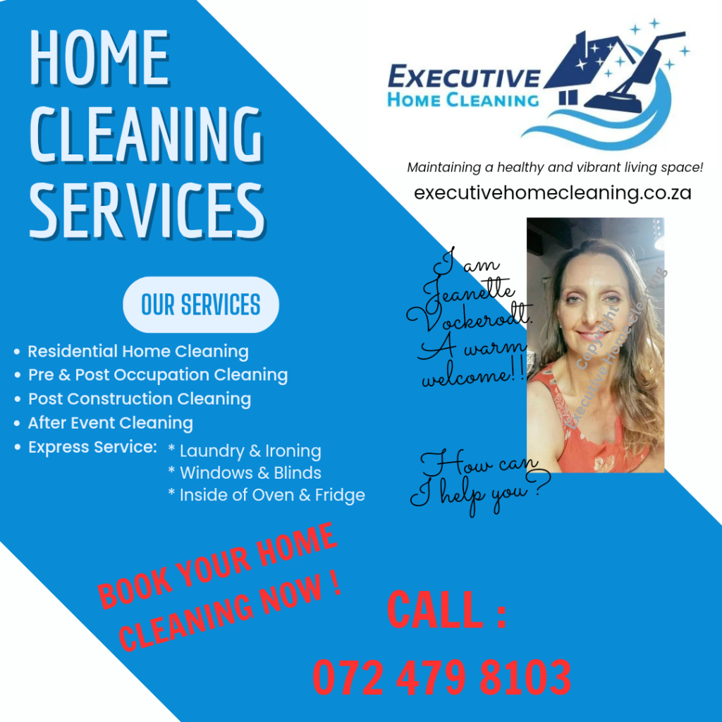 Executive Home Cleaning provides residential home cleaning services at your convenience throughout Port Elizabeth/Gqeberha. It is our goal to clean your home to your satisfaction.